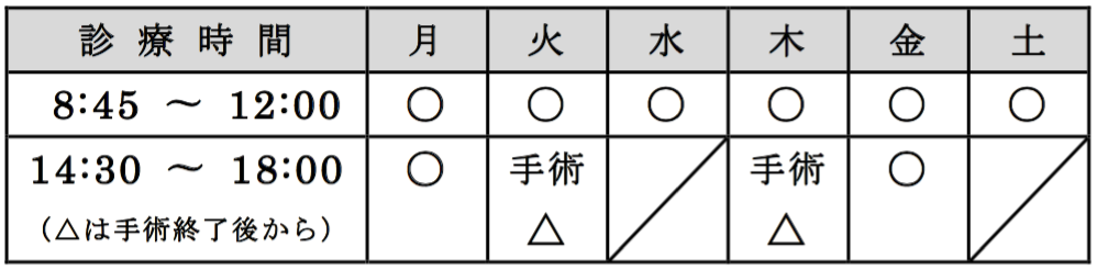 2022.06/18 | 6月21日(火)の午後と、28日(火)の午後は、手術件数多数につき、一般診療はありません。ご了承下さい。 |